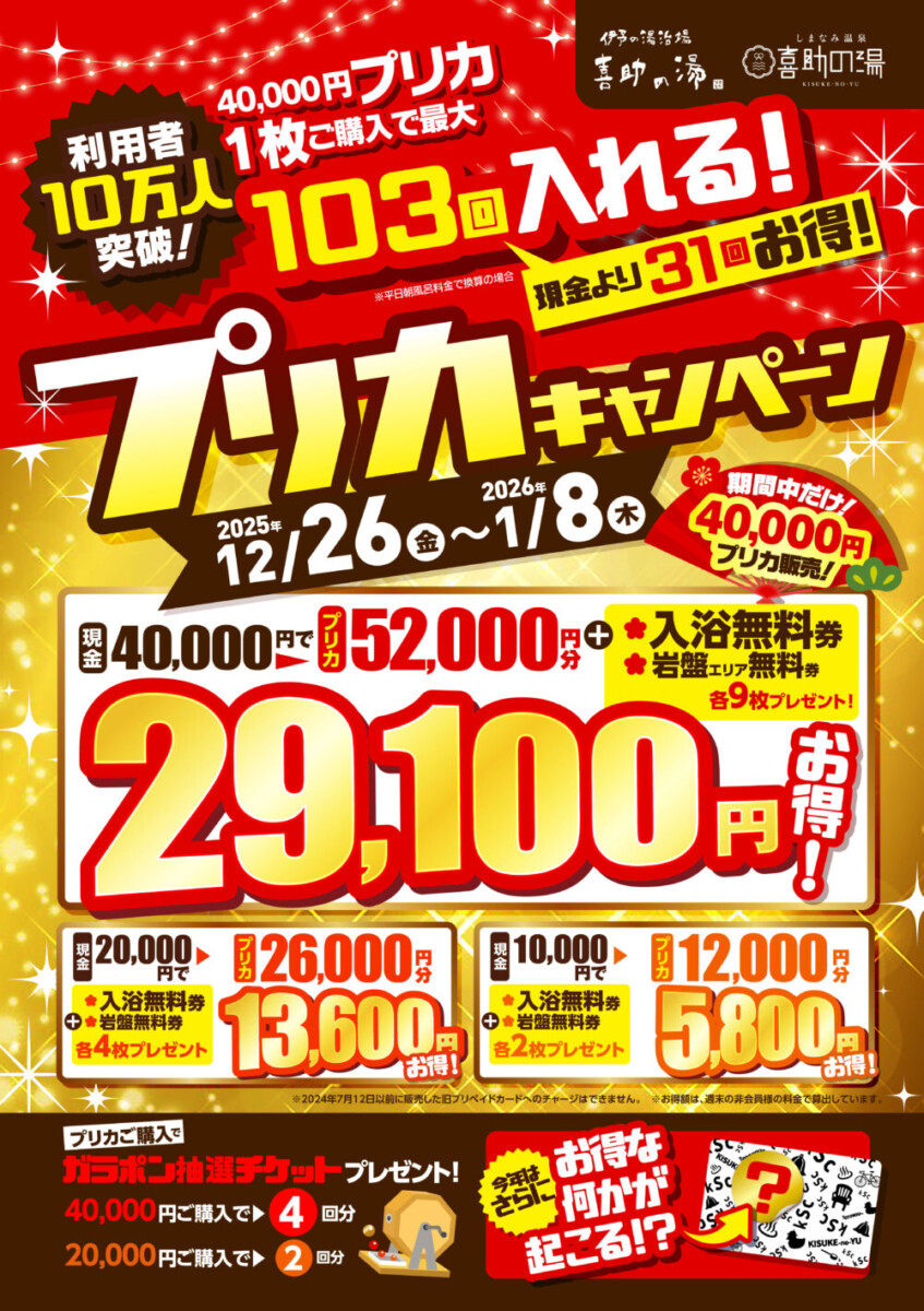 🛁✨ プリカキャンペーン開催! 期間限定で最大 31回分もお得に入浴できる!