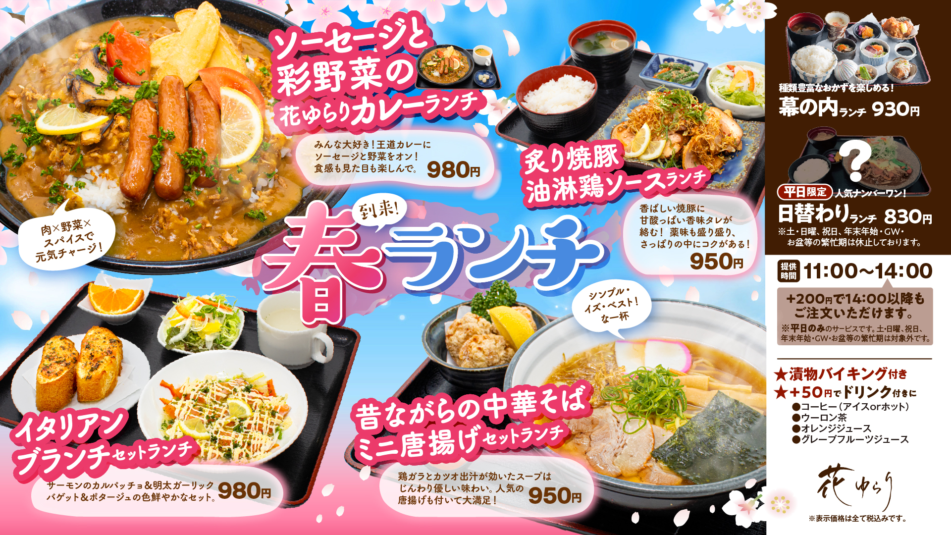 花ゆらりでは、春限定のおすすめランチをご用意しております。