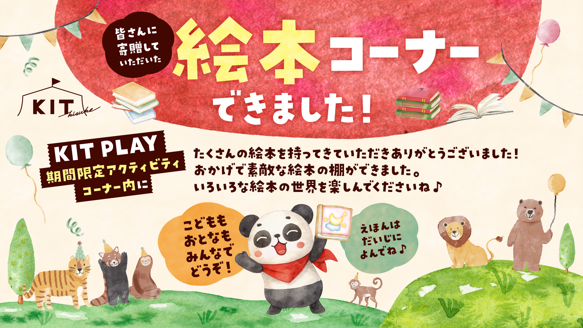 絵本をお持ちいただきありがとうございました。皆様からいただいた絵本をKITPLAYで活用させていただきます!