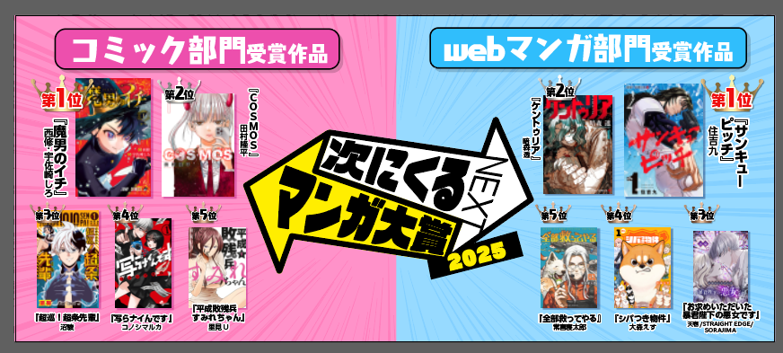 ↓『次にくるマンガ大賞2025』1位から3位まで取り揃えております!
