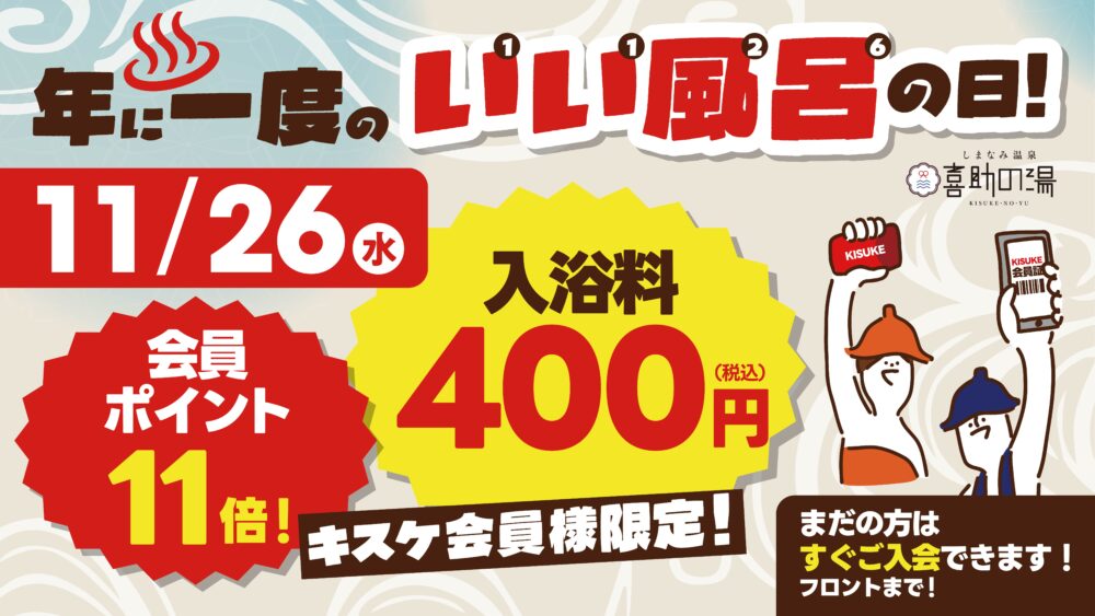 11月26日(いいふろ)にちなんだ、温泉好きにはたまらない特別な日。