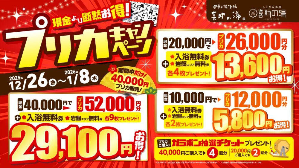 2025年12月26日(金)~ 2026年1月8日(木)の14日間でプリカキャンペーンを開催します!!