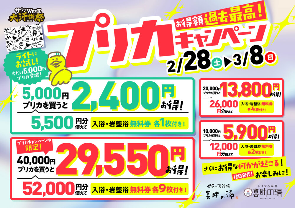 日頃のご愛顧に感謝を込めて、今年も「サウナWEEK大汗謝プリカキャンペーン」を開催いたします。