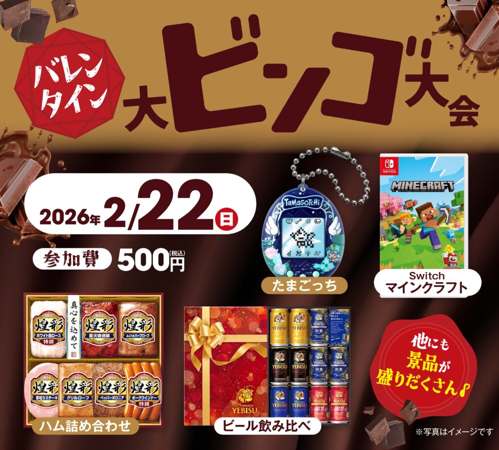 今年のバレンタインは、**みんなで盛り上がる「大ビンゴ大会」**を開催します!