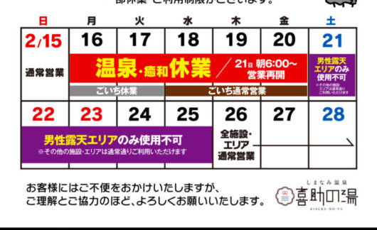 2/16(月)~20(金) メンテナンス休業・新設工事について