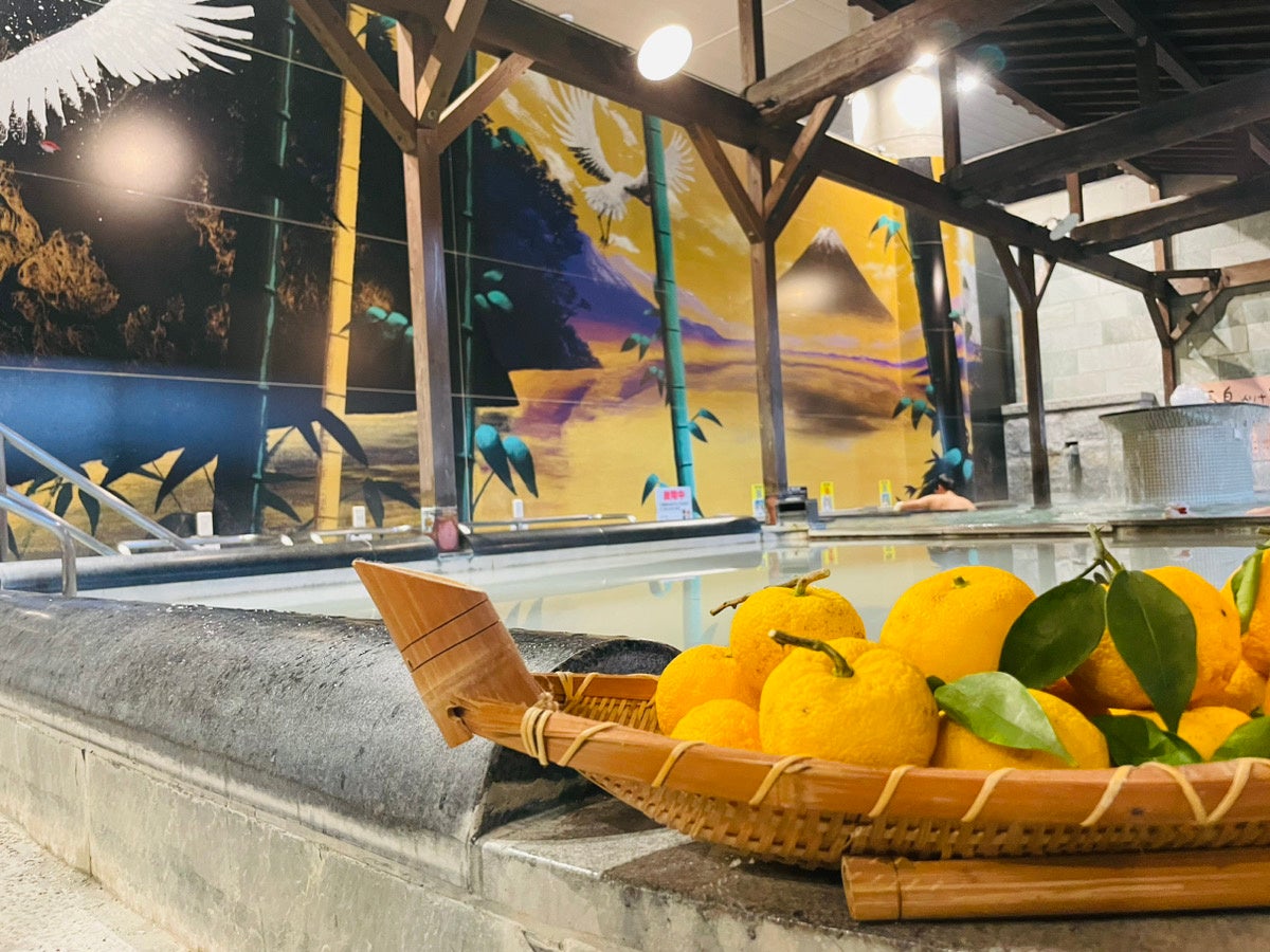 「柚子風呂」は、冬至の日に行われる禊(みそぎ)の風習に由来します。ゆずは「融通がきく」、冬至は「湯治」に通じるという語呂合わせから江戸時代に広まったものと考えられています。また、冬至に柚子湯に入ることには、運を呼び込む前に体を清めるという意味もあります。