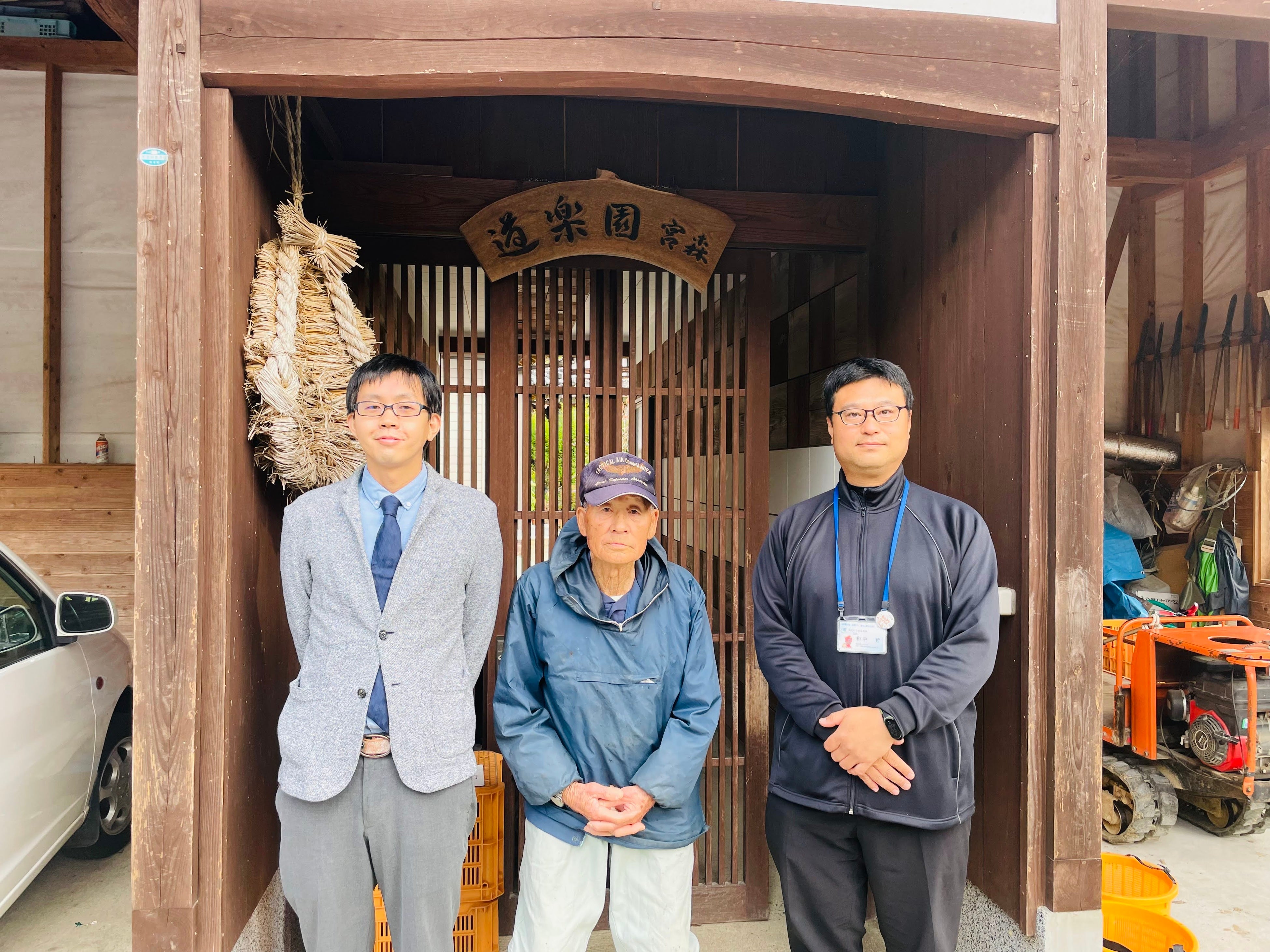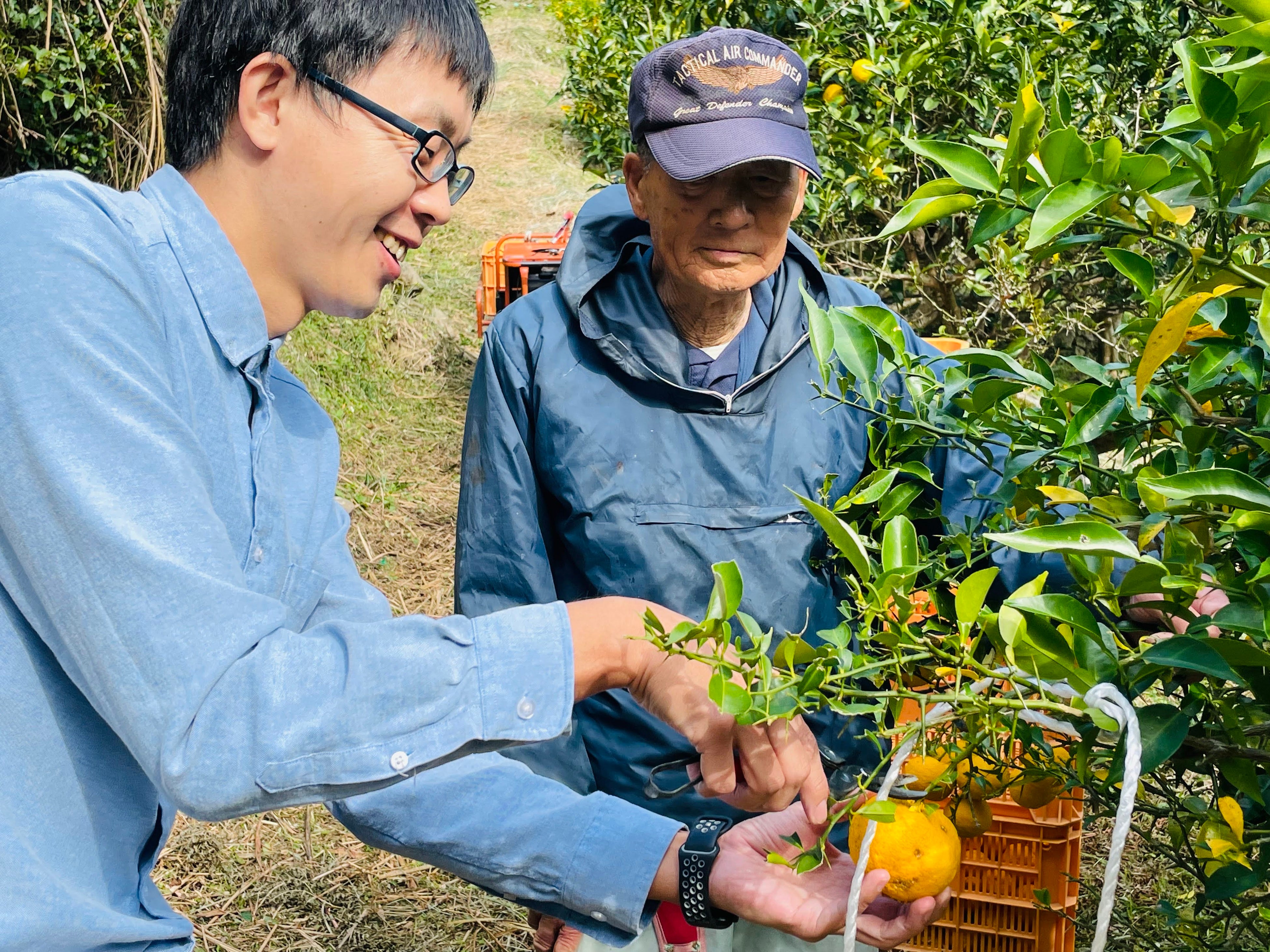11月15日には、「喜助の湯」支配人の臼意卓が、鬼北町役場の和中哲さんとともに、鬼北町父野川の宮森竹義さんのゆず園を訪ね、栽培のへこだわりや苦労などの貴重なお話を直接聞き、収穫体験もさせていただきました。こだわりのゆずを用いた「柚子風呂」「柚子ロウリュ」をぜひ一度、ご体験ください!