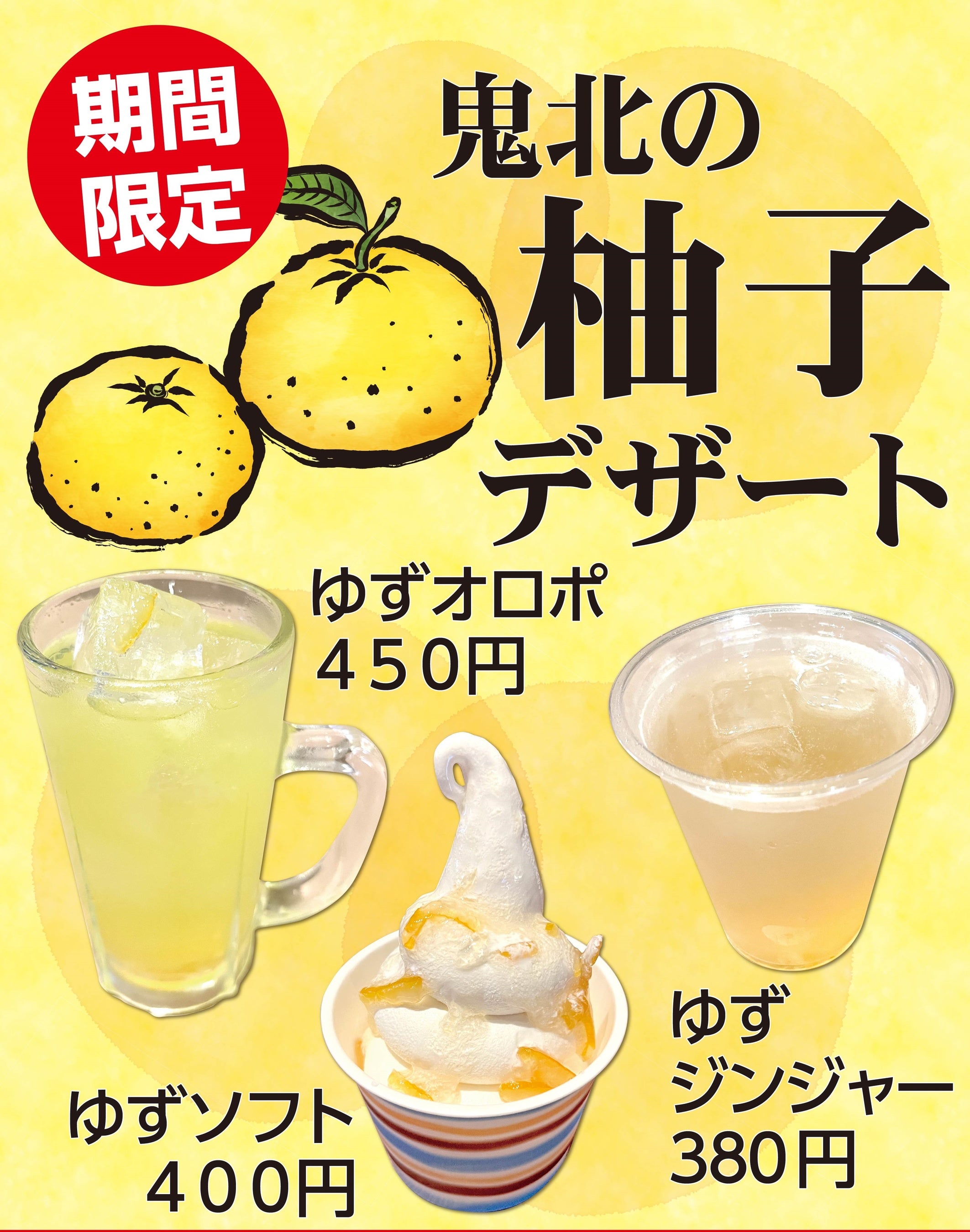▼12月1日~12月23日まで期間限定の鬼北の柚子デザートも販売中