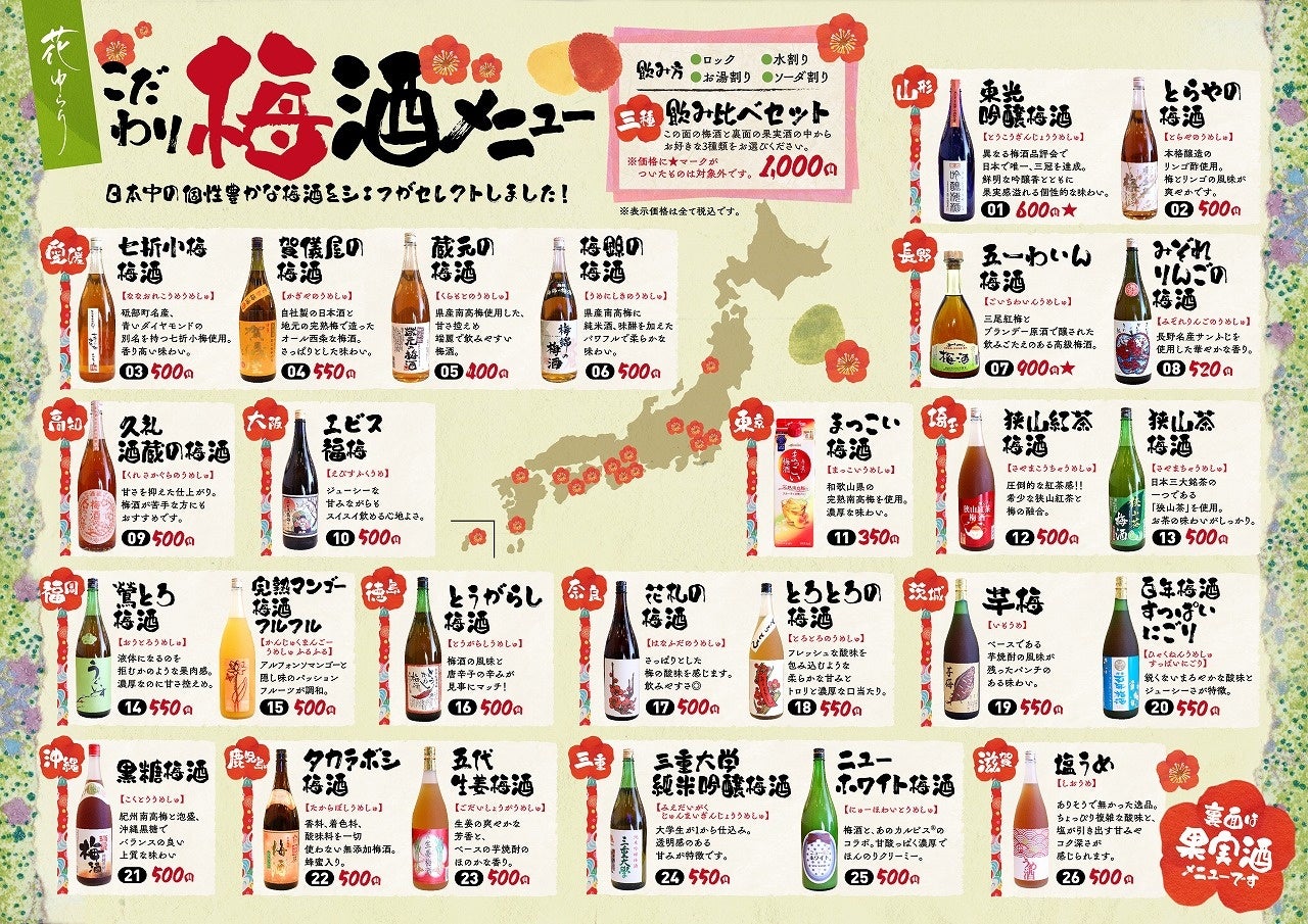 また、リニューアル記念として、女性向けに全国の珍しい果実酒を常時60種類以上揃えました。全国から仕入れた希少な梅酒など、ここでしか飲めない一品もあります。