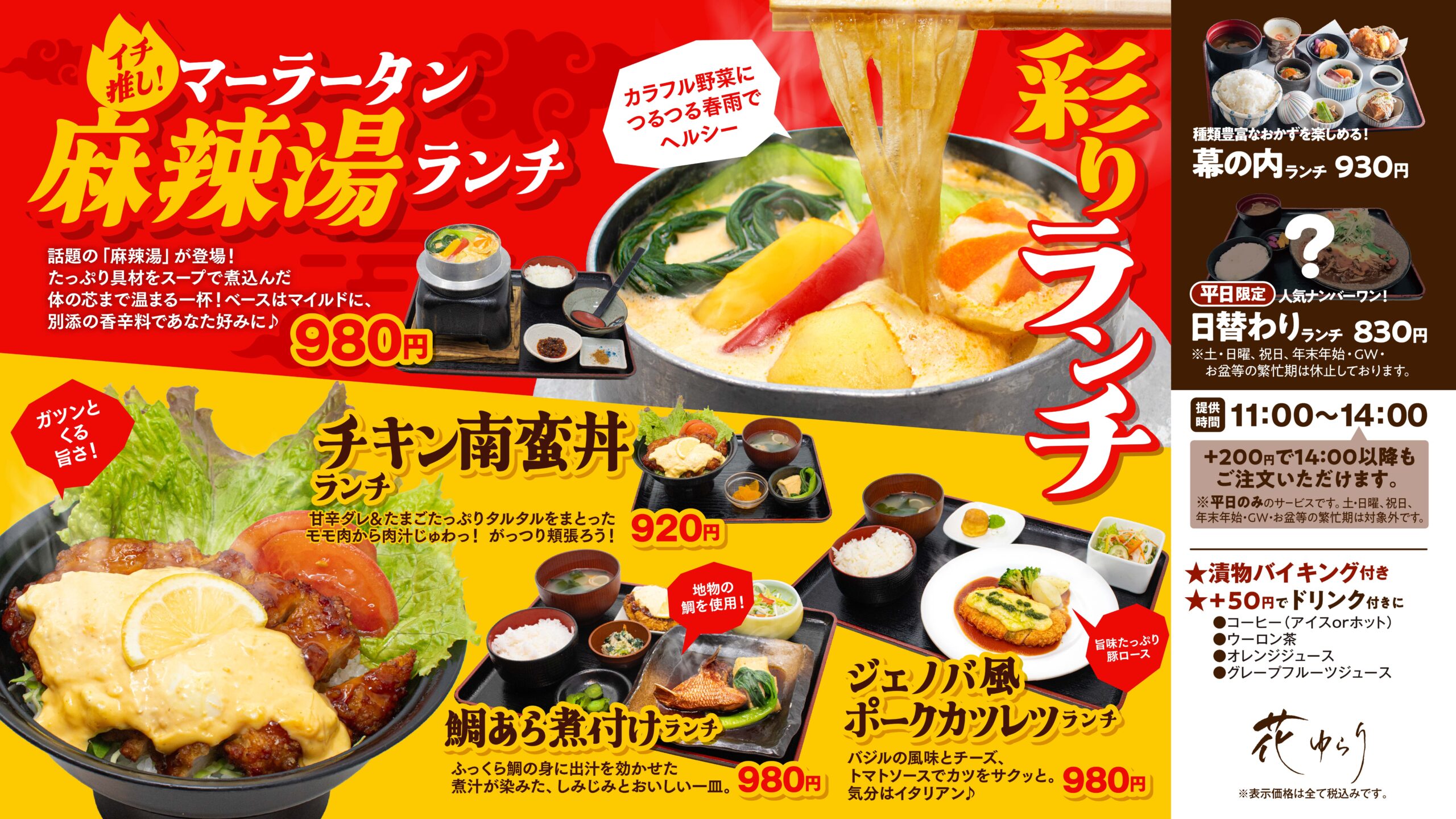 花ゆらりでは、寒い季節にぴったりの温かいランチメニューを多数ご用意しております。
