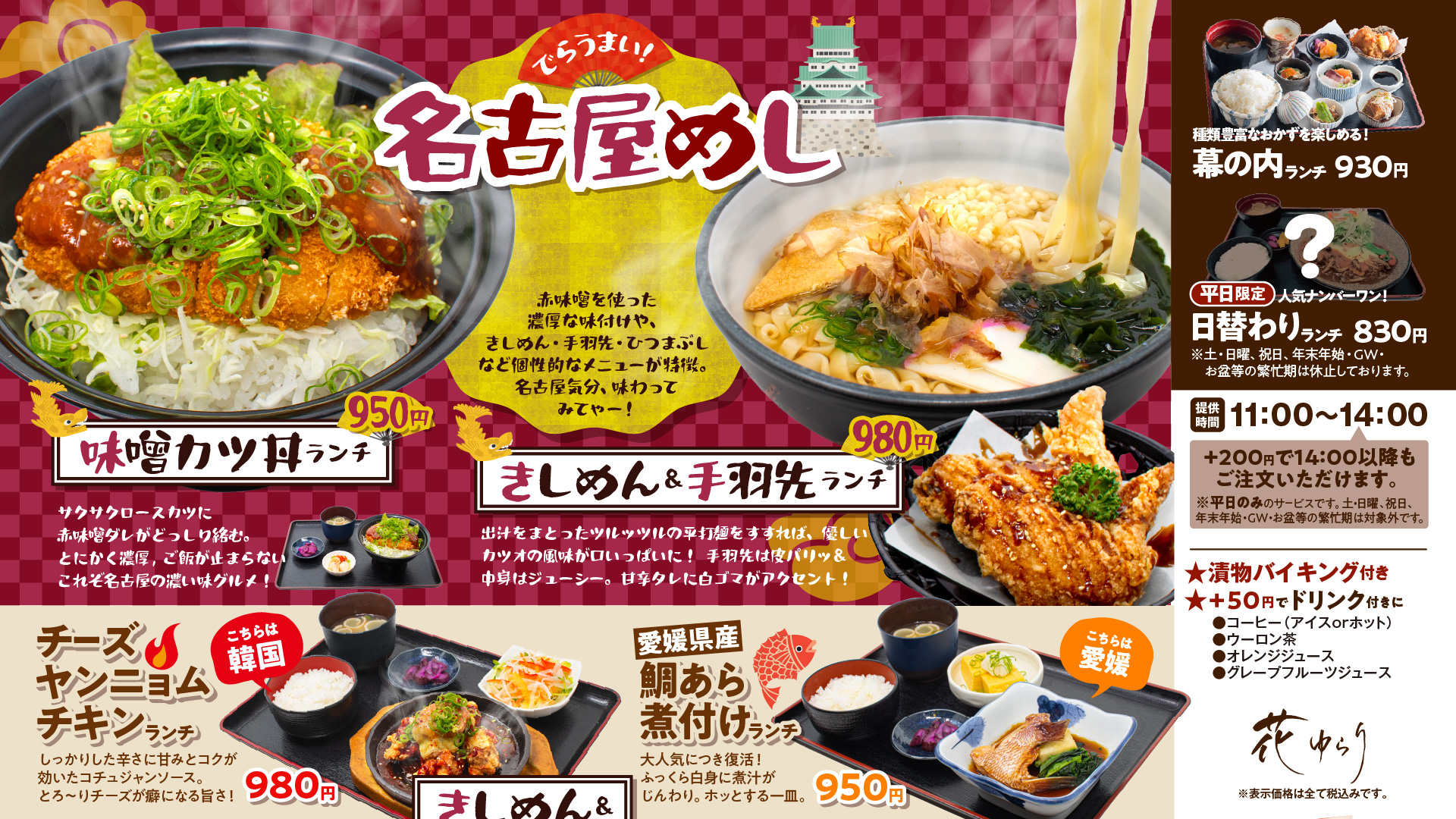 赤味噌のコク深い味わいを中心に、きしめん・手羽先・ひつまぶしなど、個性なメニューが特徴の名古屋めし。