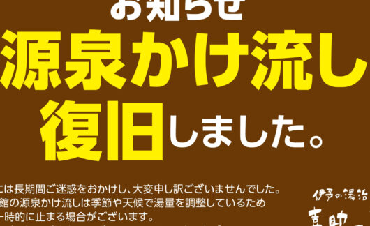 - 源泉かけ流し 再開のお知らせ
