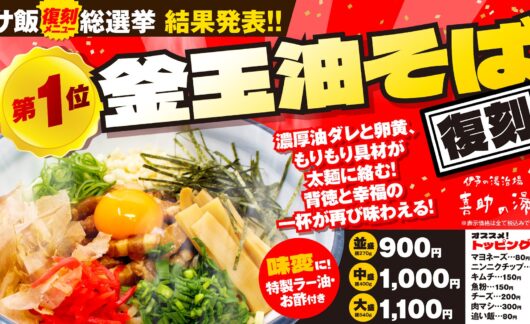 - 「Re:サ飯2025 人気投票」結果発表 第1位は「釜玉 油そば」 4月1日より期間限定で復刻販売スタート